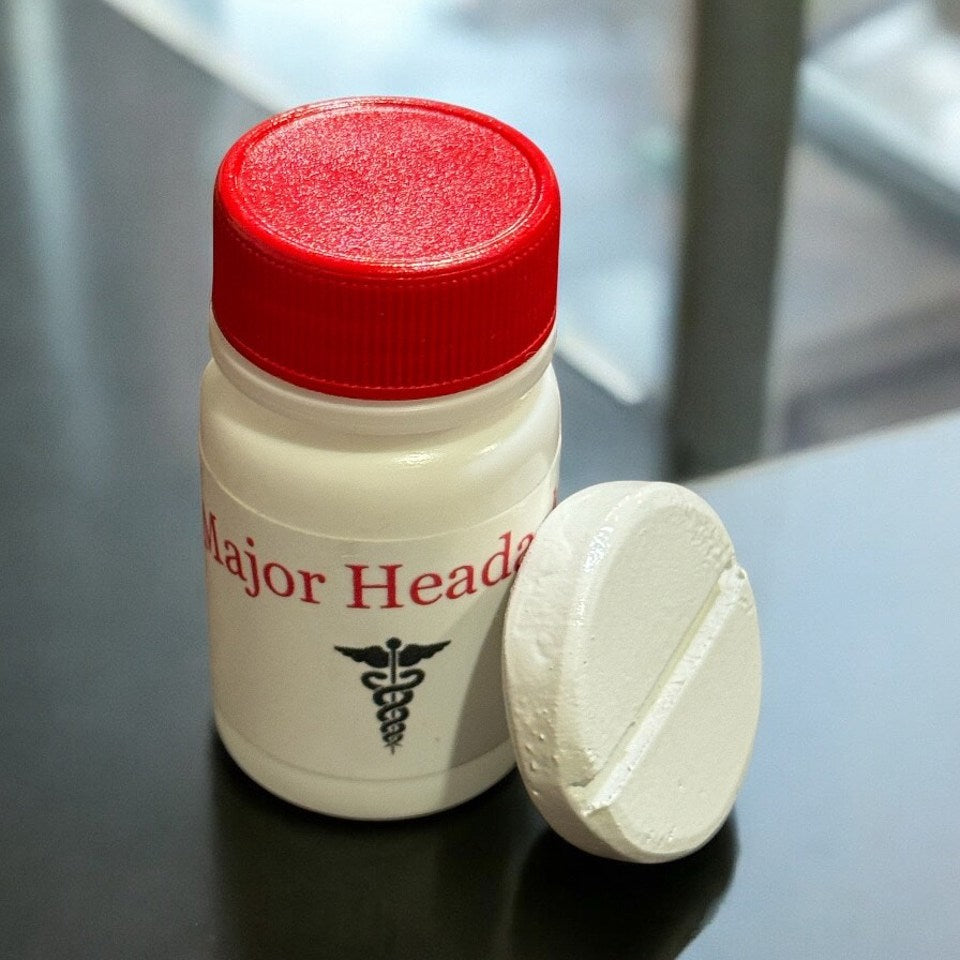 Turn heads and bring laughs with Major Headache! When the performer reaches for an aspirin bottle to ease a headache, they comically dump out a giant aspirin instead! This hilarious visual gag is perfect for any performance, easily portable, and features an instant reset.