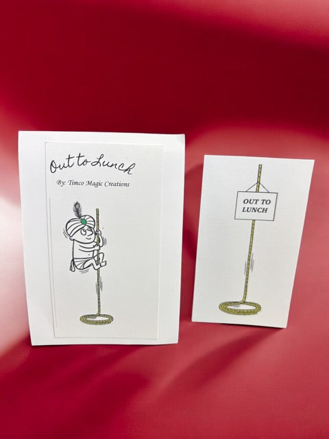 Delight your audience with Out to Lunch, a whimsical illusion that packs a powerful punch! The performer presents a card featuring a rope rising from a basket with a person at the top. After a spectator initials the card, the magician reveals that no one has ever disclosed where the person goes—until now.