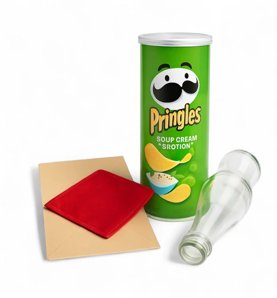 Amaze your audience with this incredible multi-phase magic routine! The performer places an empty Cola bottle into an empty chip can. After making a silk vanish, it mysteriously reappears inside the sealed bottle within the can. But the magic doesn't stop there! The bottle and silk are placed into a paper bag, and with a magical gesture, both vanish completely!