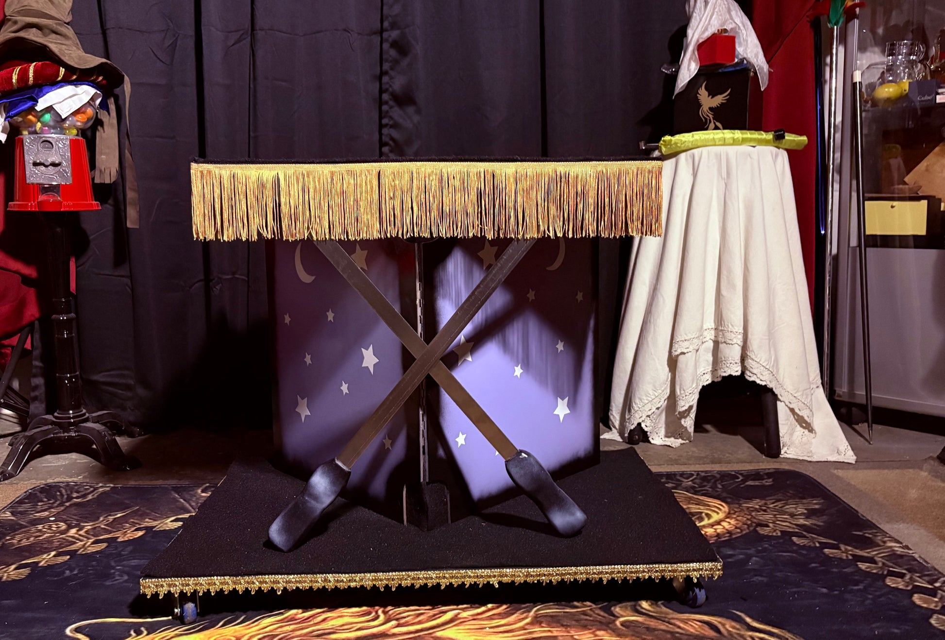 This illusion is custom designed to allow more weight than that of the standard Floating Carpet Illusion.